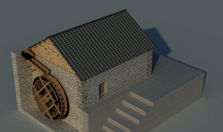 水碾房是阿者科村重要的公共交往空间,此外,水碾房也是与村民生活息息相关的生产设施,极大的满足了当地村民碾磨粮食的需求,且省去了很繁重的人工劳作。水碾房依山坡而建,平面方整,水碾房外立面以毛石砌筑而成,古拙质朴,上面覆以两坡悬山茅草顶,形式简洁。